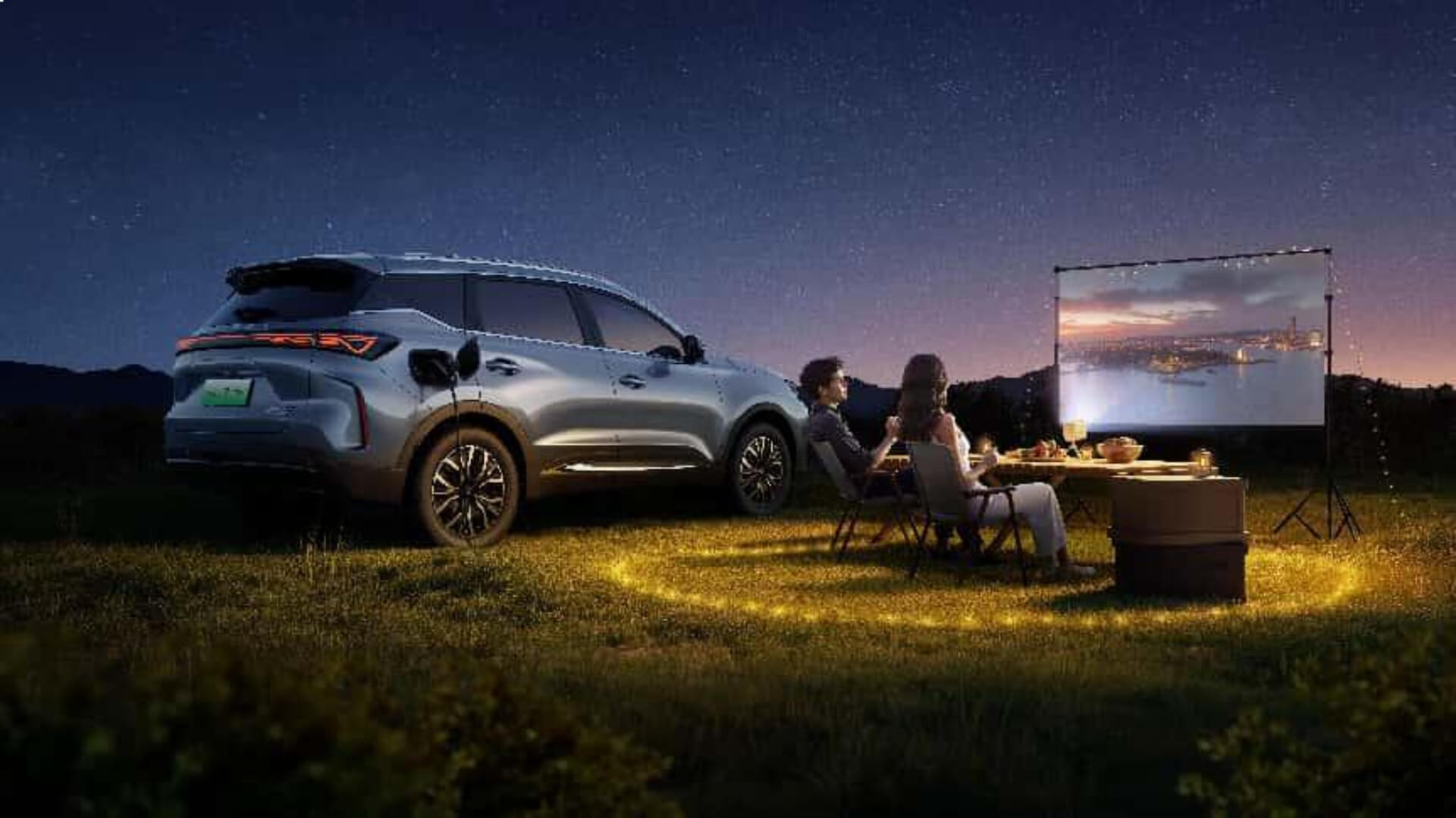 Para los usuarios que disfrutan de actividades al aire libre, TIGGO 7 PHEV CSH incorpora una función de descarga externa de energía de 3.3 kW, ideal para camping, dispositivos eléctricos o proyectores.